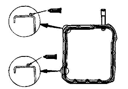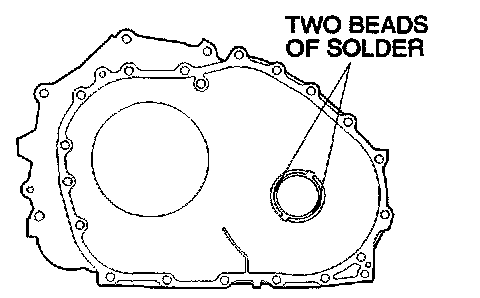75. Place two beads of solder [each 10 mm (0.39 inch) in length, 3 mm (0.12 inch) in diameter] on the torque converter housing as shown in the illustration.