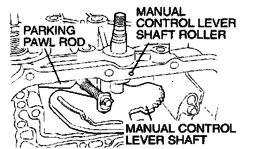 86. Install the manual control lever shaft and parking pawl rod.