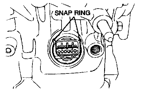 92. Insert the solenoid valve harness connector into the hole from the inside of the transaxle case so it is oriented as shown in the illustration. Then secure the snap ring to the connector groove.