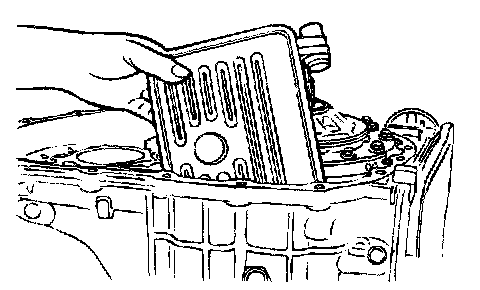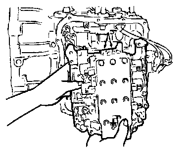 94. Install the valve body and gasket to the transaxle case. Make sure that the manual valve's pin is in the groove in the detent plate of the manual control lever.