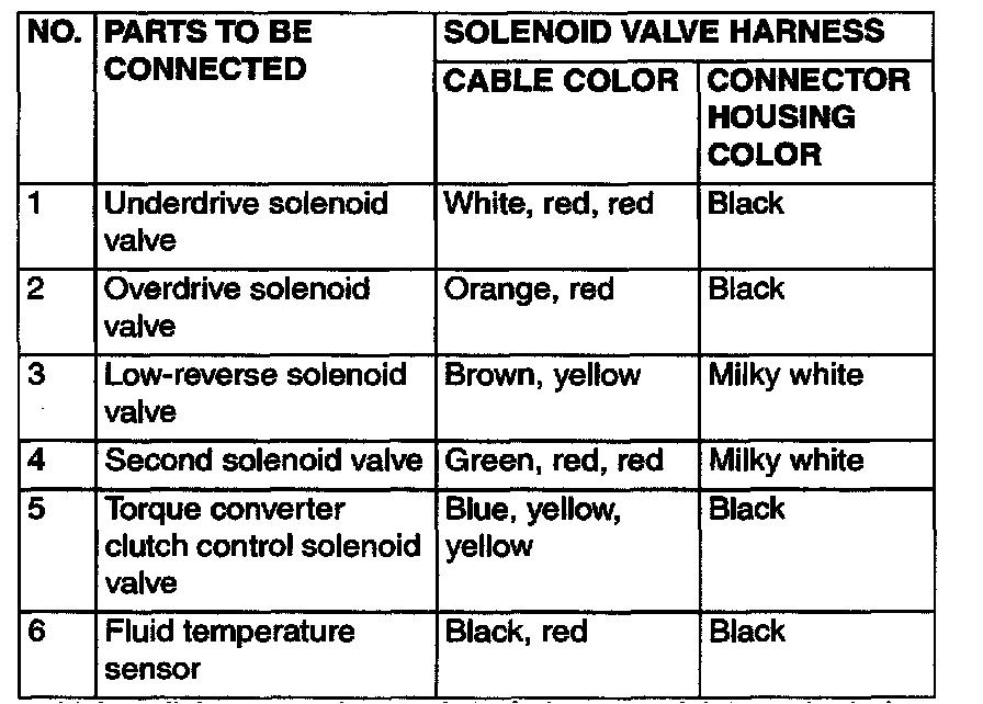 97. Connect the solenoid valve harness connectors to the valve body connectors and the fluid temperature sensor connector.