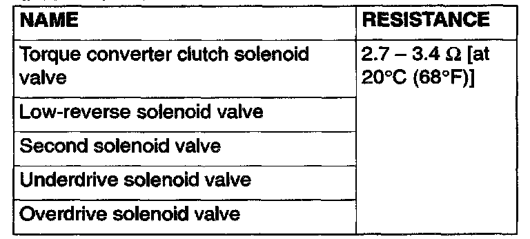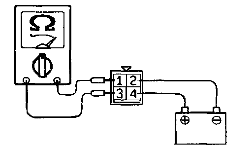 3. Measure the resistance between terminals 1 and 2 of each solenoid valve.