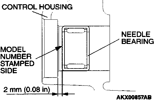 Press fit the needle bearing up the illustrated dimension, while making sure that the model number stamped side is oriented toward the control housing side.