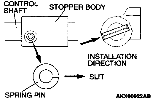 Drive in the spring pin so that the slit is in the direction shown in the figure.