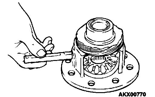 1. After a spacer has been mounted on the back surface of the side gear, install the side gear in the differential case.