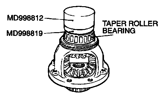 Using special tools MD998812 and MD998819, press install the taper roller bearing.