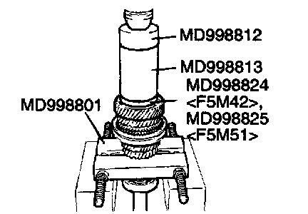 1. Using special tool MD998801, support the 5th speed gear, and then set them on the press.