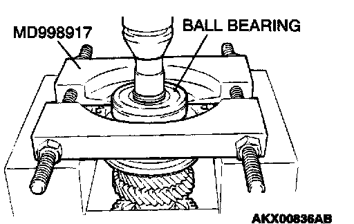 1. Using special tool MD998917, support the ball bearing, and then set them on the press.