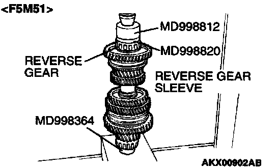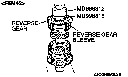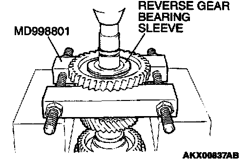 1. Using special tool MD998801, support the reverse gear, and then set them on the press.