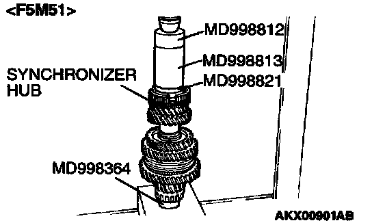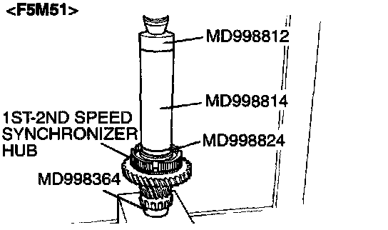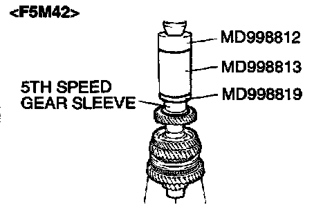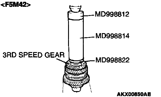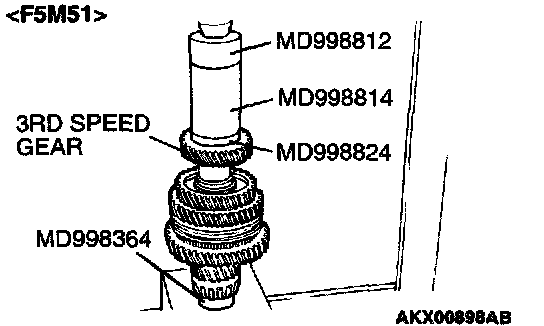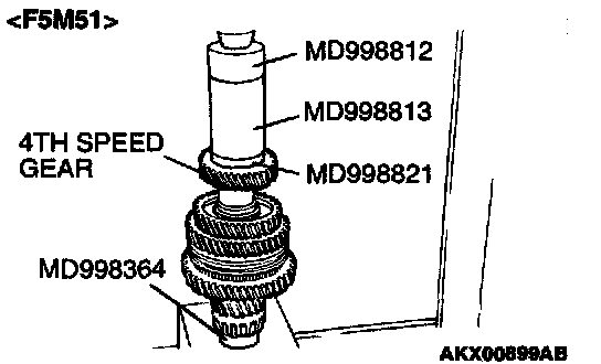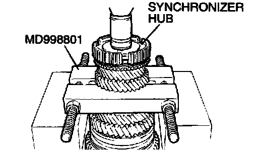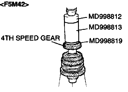 1. Using special tool MD998801, support the 4th speed gear, and then set them on the press.
