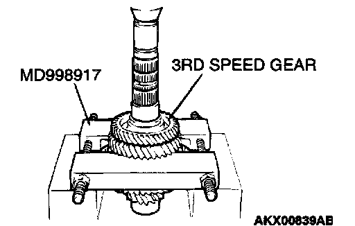 1. Using special tool MD998917, support the 1st speed gear, and then set them on the press.