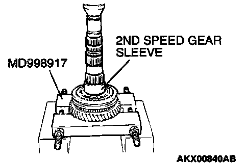 1. Using special tool MD998917, support the 2nd speed gear, and then set them on the press.