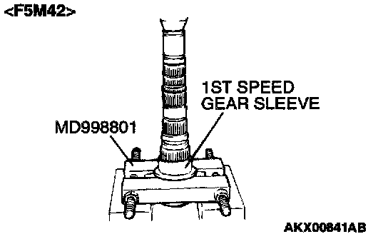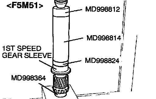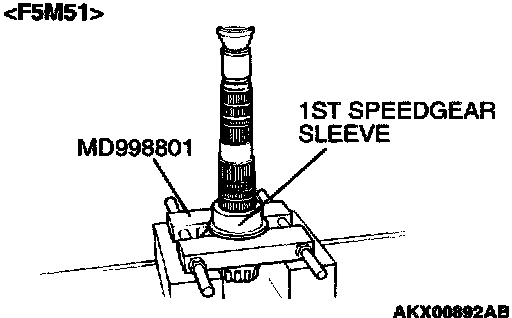1. Using special tool MD998801, support the 1st speed gear sleeve, and then set them on the press.