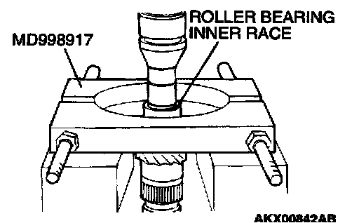 1. Using special tool MD998917, support the roller bearing inner race, and then set them on the press.
