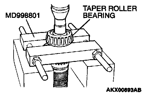 1. Using special tool MD998801, support the taper roller bearing, and then set them on the press.
