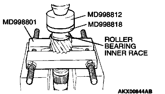 2. Using special tools MD998812 and MD998818, press install the roller bearing inner race with the press.