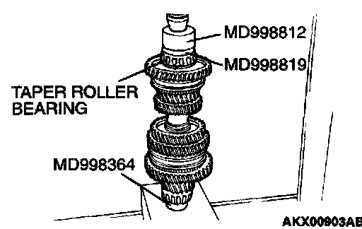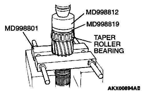 Using special tools MD998812, MD998819 and MD998364, press install the taper roller bearing.