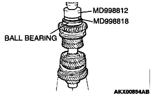 2. Using special tools MD998812 and MD998818, press install the ball bearing.