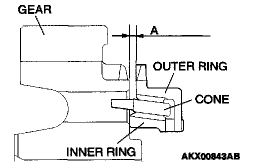 2. Install the outer ring, inner ring and cone, force them toward the gear, and check clearance "A". If "A" is less than the limit, replace.