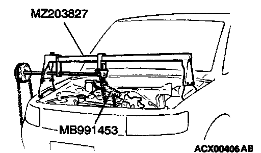 Set the special tools MB991453 and MZ203827 to the vehicle to support the engine assembly.