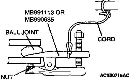 CAUTION: Use special tool MB991113 to loosen the tie rod end mounting nut. Only loosen the nut; do not remove it from the ball joint.