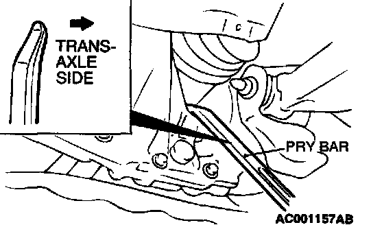 1. Insert a pry bar between the transaxle case and the drive shaft as shown to remove the drive shaft.