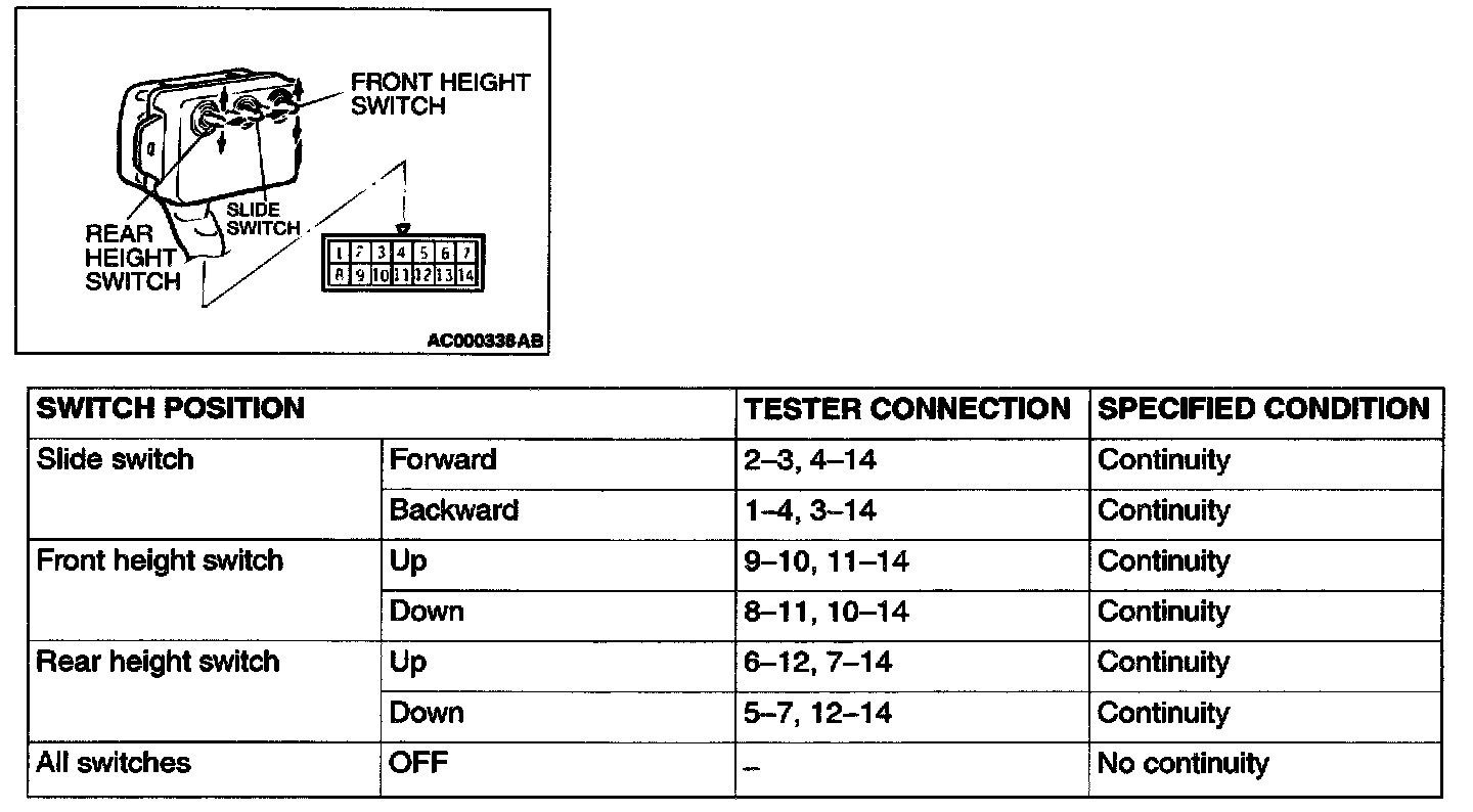 Power Seat Switch: Testing and Inspection