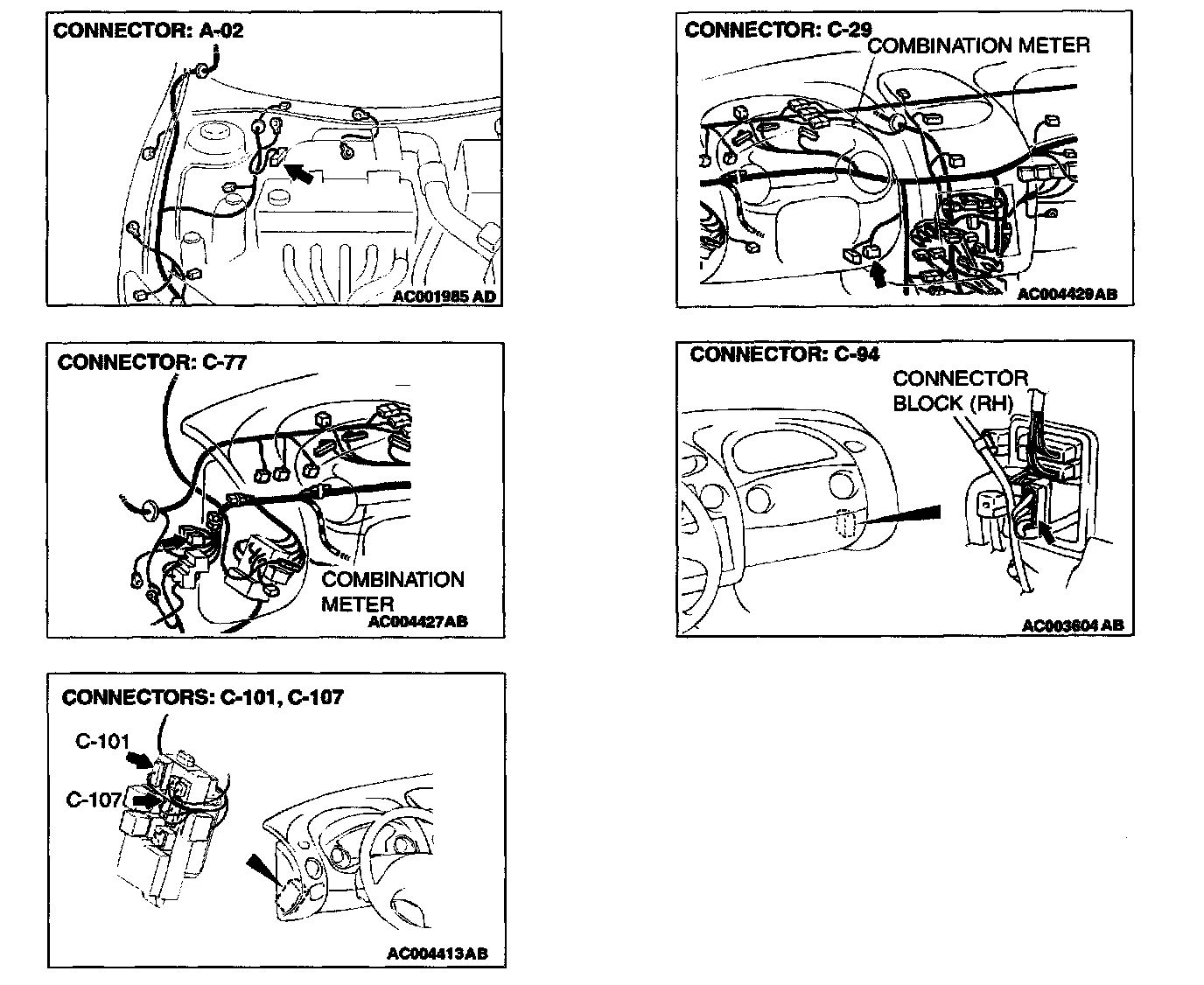 NOTE: After inspecting the intermediate connector C-94, C-101, or C-107, inspect the wire. If the intermediate connector C-94, C-101, or C-107 is damaged, repair or replace it. If the connector has been repaired or replaced, go to Step 3.