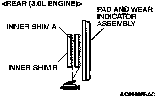 7. For front disc brake <2.4L ENGINE> and rear disc bake <3.0L ENGINE> apply brake grease SAE J310 NLGI number 1 to the following positions before installing the pad.