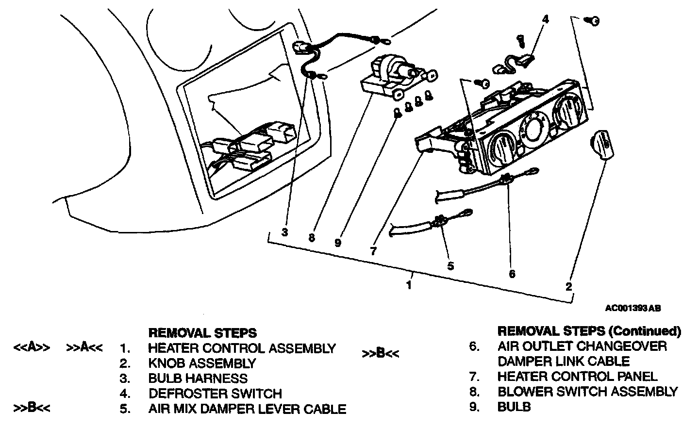 Heater Control Assembly and A/C SwitchREMOVAL AND INSTALLATION
