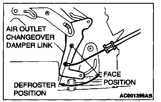 <> AIR MIX DAMPER LEVER CABLE, AIR OUTLET CHANGEOVER DAMPER LINK CABLE REMOVAL