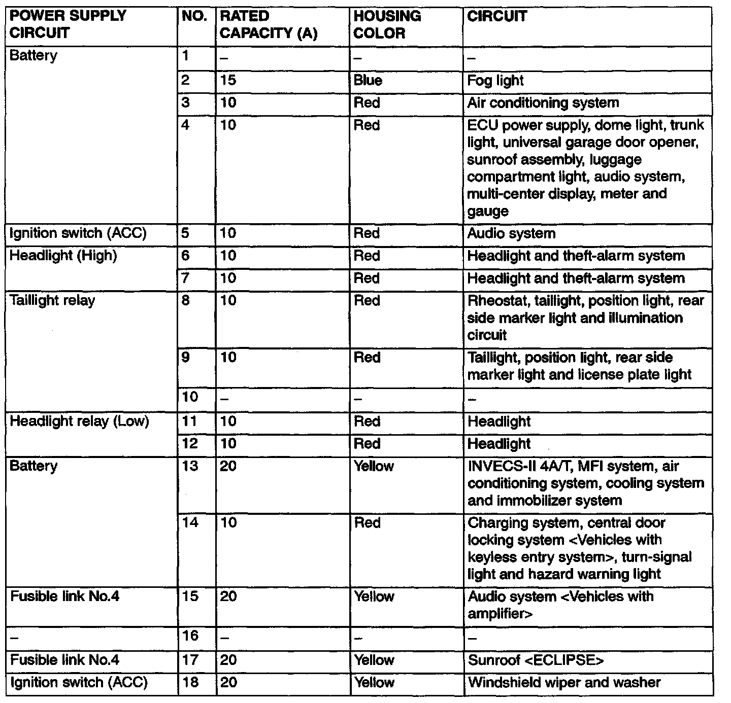 Dedicated Fuses 15 - 18 (Connected To Junction Block):