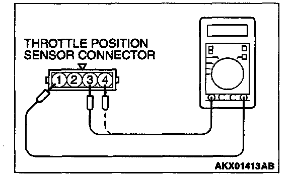 3. Measure resistance between the throttle position sensor side connector terminal 1 and terminal 3.