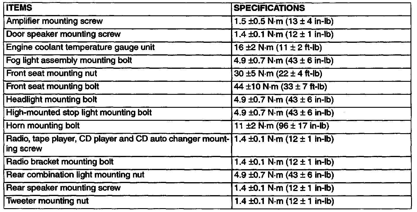 Fastener Tightening Specifications: