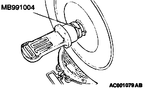 NOTE: For vehicles with aluminum type wheels, attach the camber/caster/kingpin gauge to the driveshaft by using special tool MB991004. Tighten special tool MB991004 to the same torque 226 ± 29 Nm (167 ± 21 ft. lbs.) as the driveshaft nut.