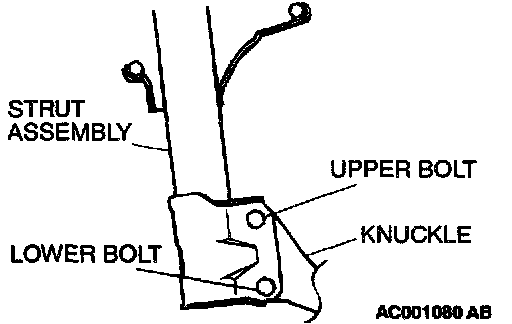 1. Estimate how much additional camber adjustment is required. Using the table below, select the camber adjusting bolt, and then replace the knuckle and strut assembly connection bolts (upper bolt, lower bolt) with the selected bolts.