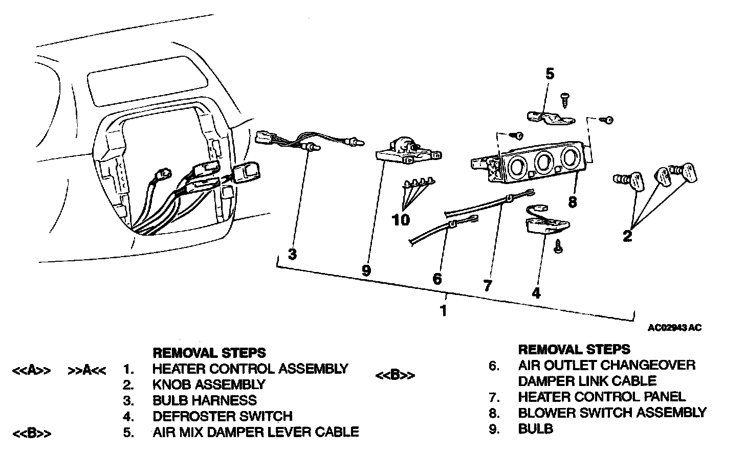 HEATER CONTROL ASSEMBLY AND A/C SWITCHPre-removal and Post-installation Operation