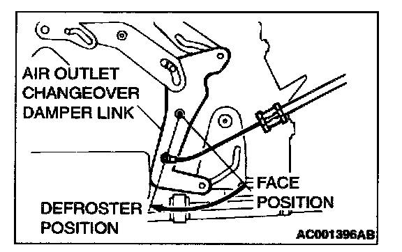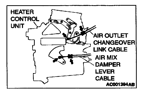 <> AIR MIX DAMPER LEVER CABLE, AIR OUTLET CHANGEOVER DAMPER LINK CABLE REMOVAL