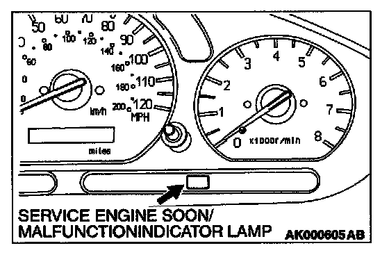 NOTE: If the Service Engine Soon/Malfunction Indicator Lamp illuminates because of a malfunction of the powertrain control module (PCM), transmission between scan tool MUT-II (MB991502) and the PCM is impossible. In this case, the diagnostic trouble code (DTC) cannot be read.
