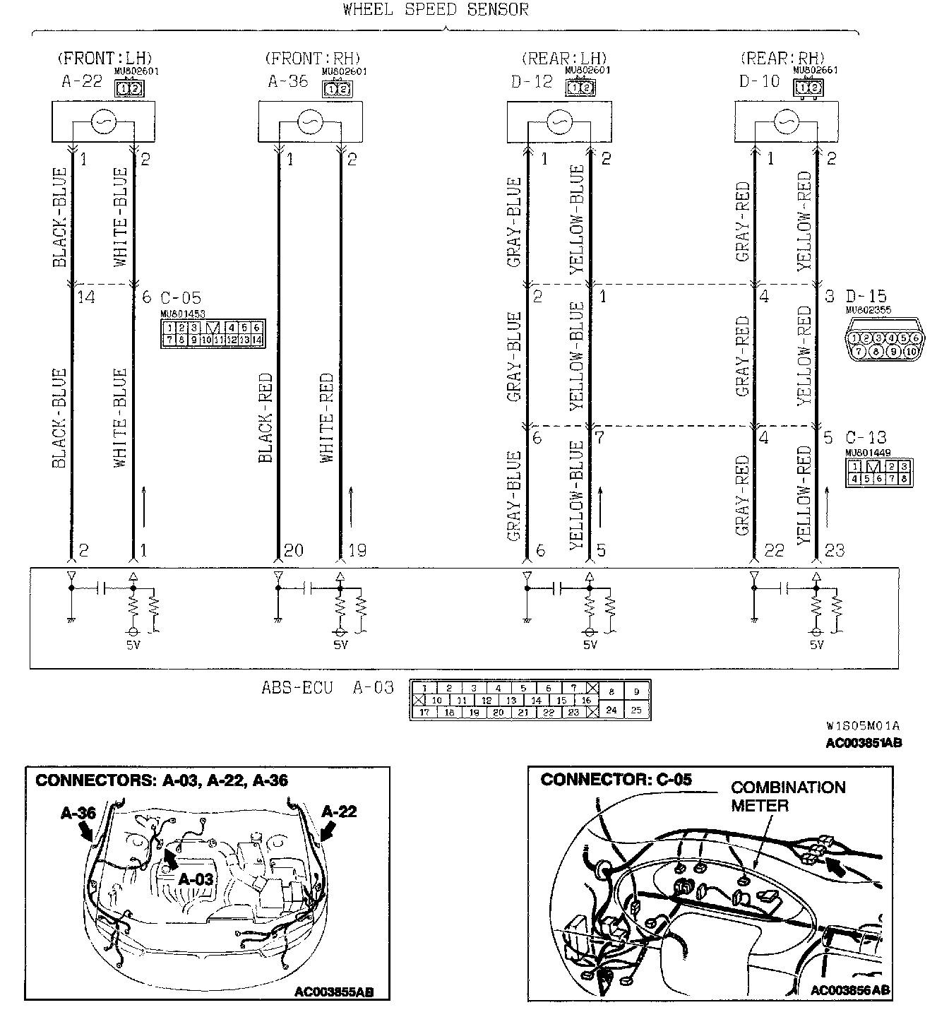 STEP 2. Check wheel speed sensor circuit at the ABS-ECU connector A-03.