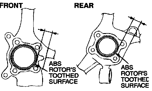 The clearance between the wheel speed sensor and the ABS rotor's toothed surface is not adjustable, but measure the distance between the sensor installation surface and the ABS rotor's toothed surface.