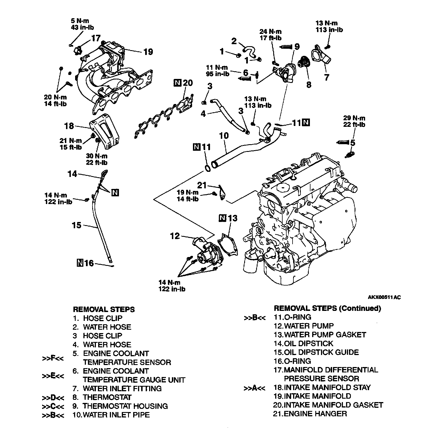 21 Nm (15 ft. lbs.) for intake manifold side bolts