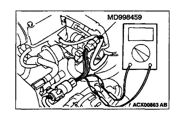 Be sure to use special tool, MB991219.Never insert a test probe from the harness side, as this so will reduce the waterproof performance and result in corrosion.