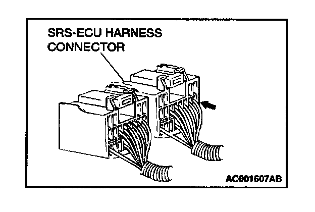 Since the SRS-ECU harness connector is plated to improve conductivity, observe the warning below when checking this connector.
