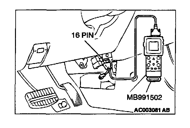 2. Connect scan tool MB991502 to the data link connector (16-pin).