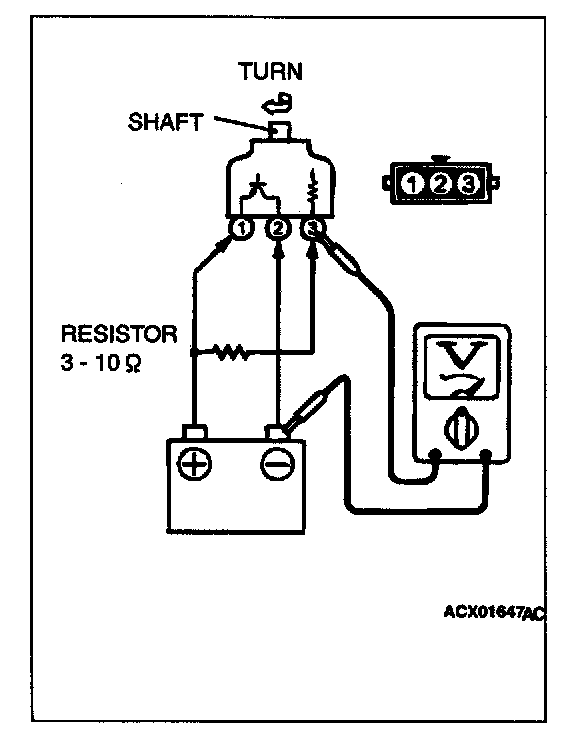 2. Turn the shaft of the vehicle speed sensor and check that there is voltage between terminals 2 - 3. (1 turn = 4 pulses)