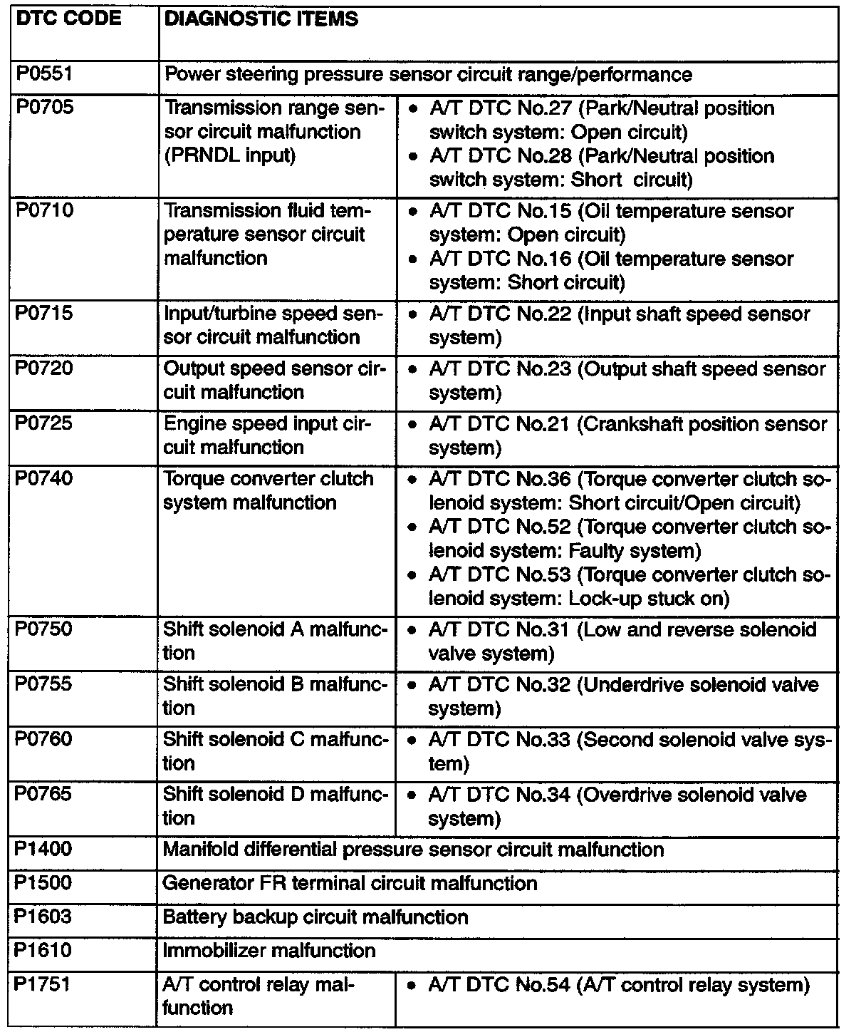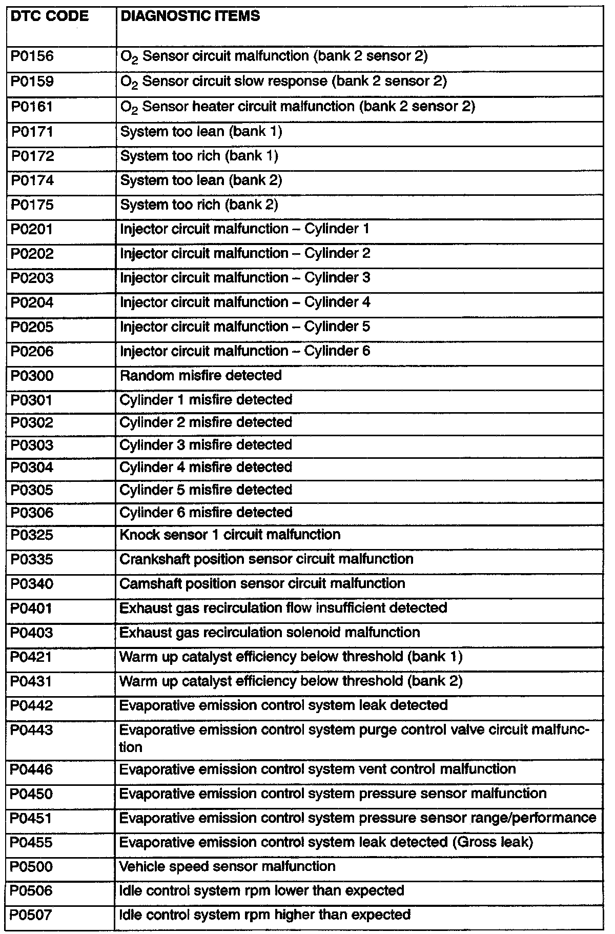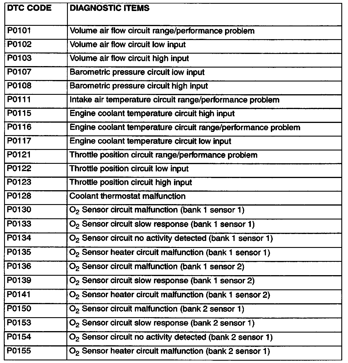 NOTE: After the PCM detects a malfunction, a diagnostic trouble code is recorded the next time the engine is started and the same malfunction is re-detected. However, for items marked with a "*," the diagnostic trouble code is recorded on the first detection of the malfunction.