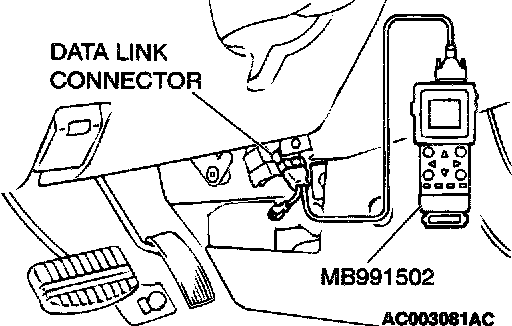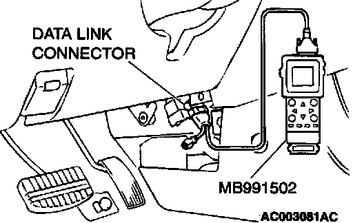 1. Connect scan tool MB991502 to the data link connector.