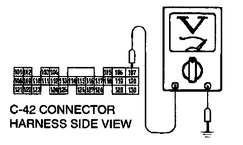 STEP 3. Check the solenoid valve output voltage at PCM connector C-42 by backprobing.