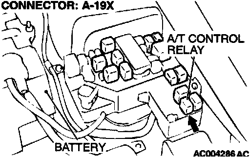 STEP 6. Check connector A-19X at A/T control relay for damage.